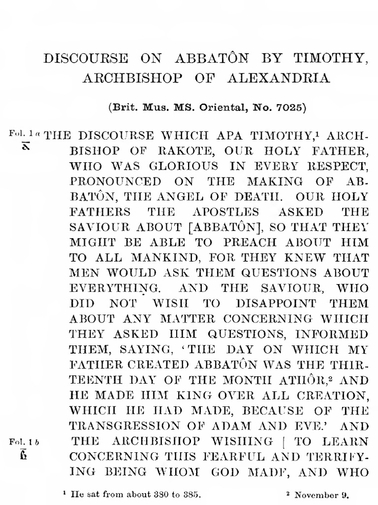 - from “Discourse on Abbatôn” by Timothy, Archbishop of Alexandria